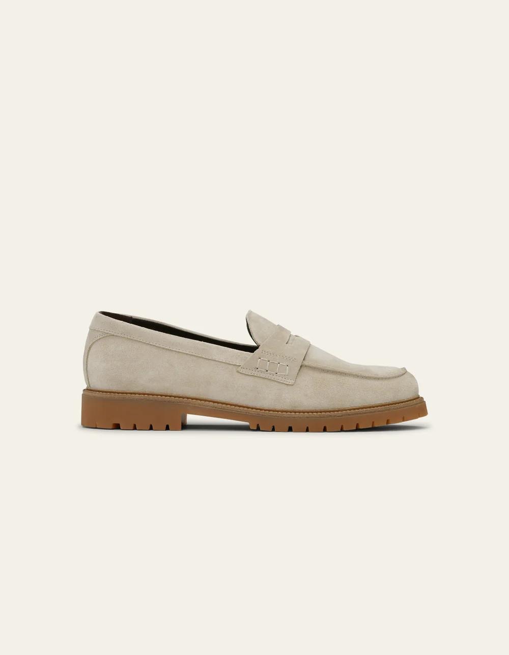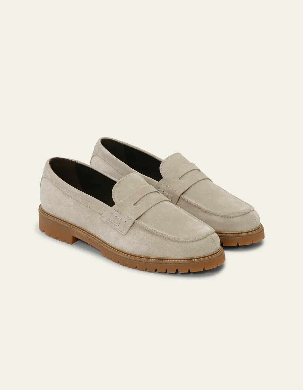 Mocassins en daim de couleur sable clair