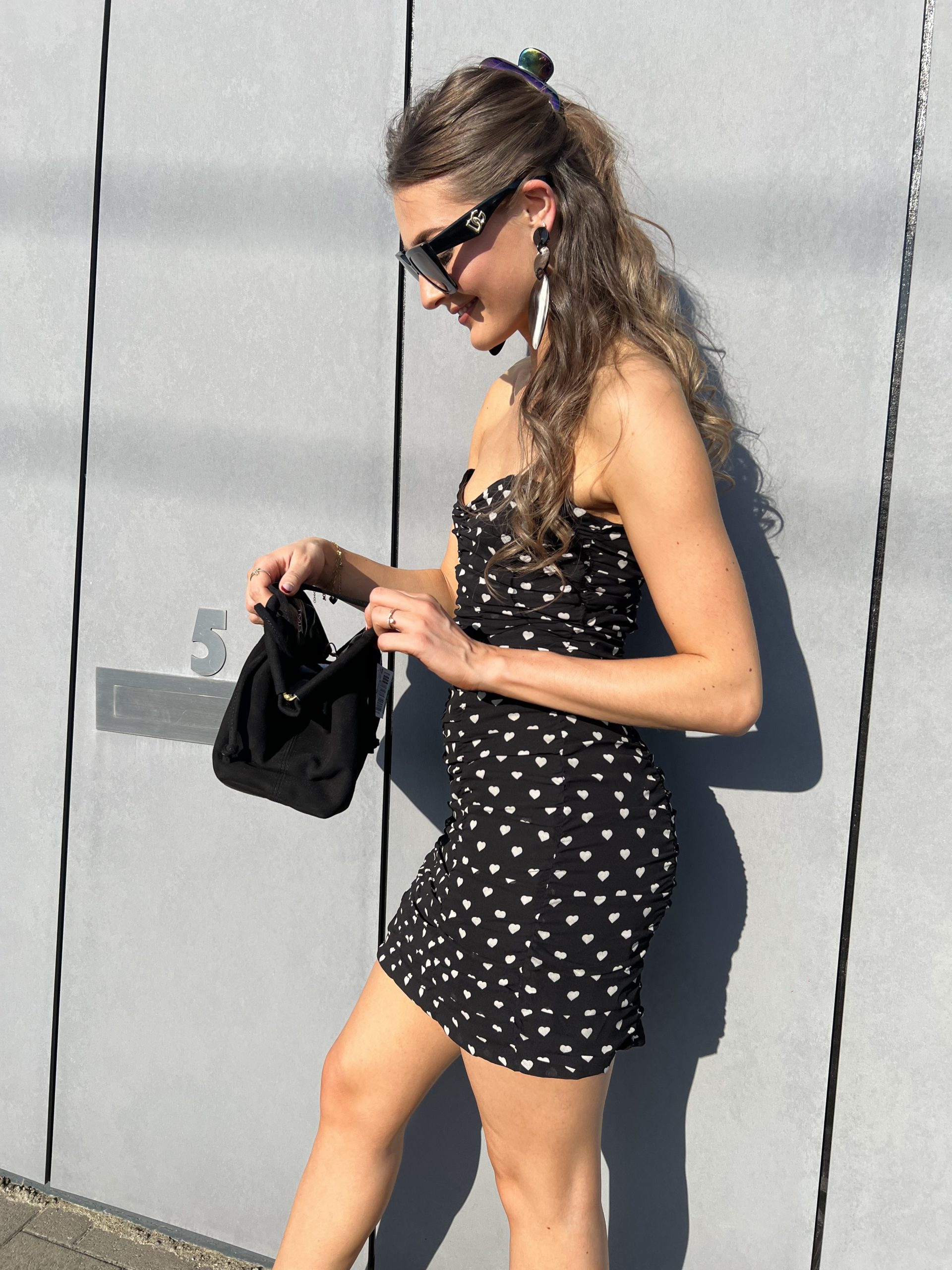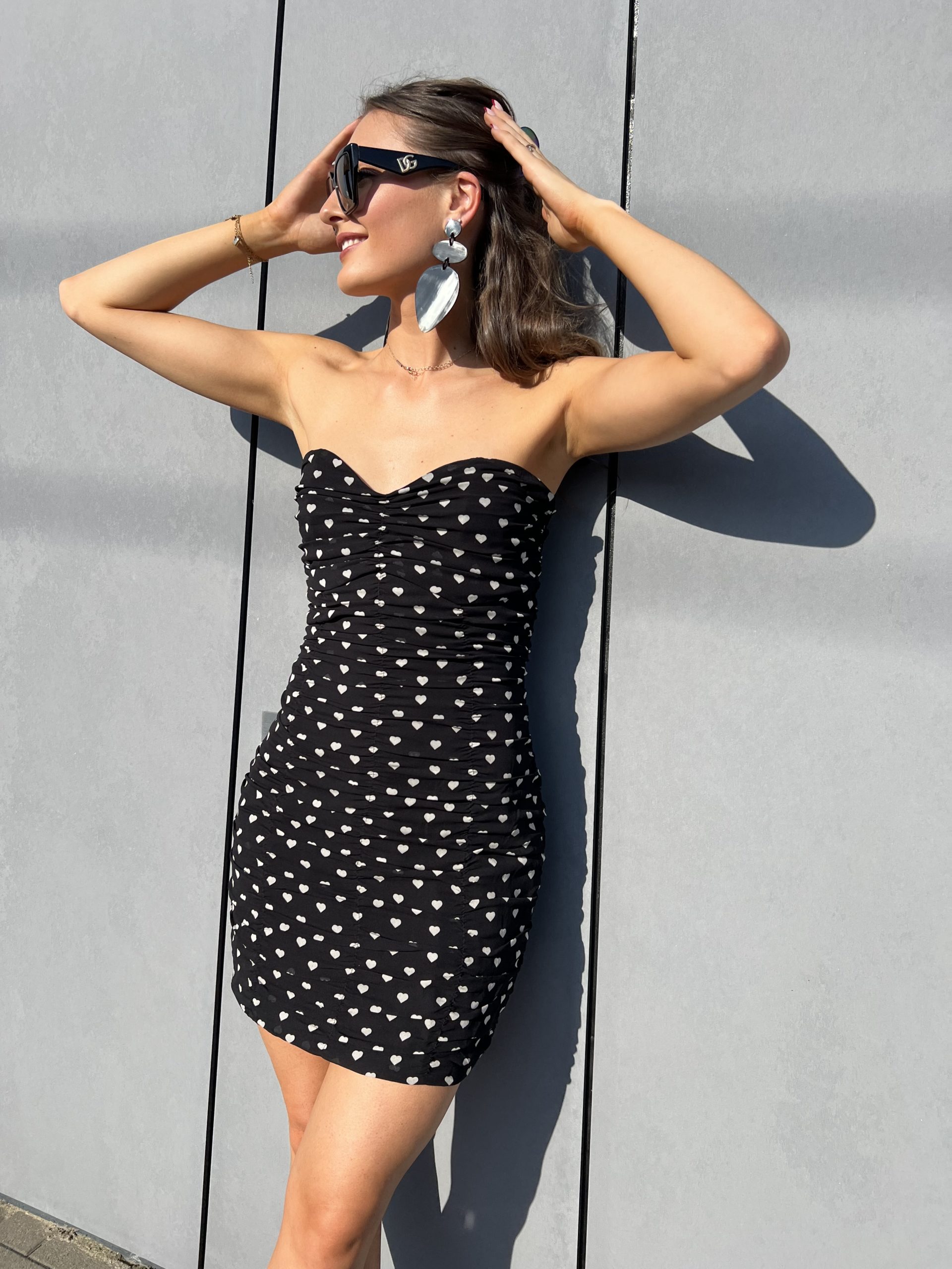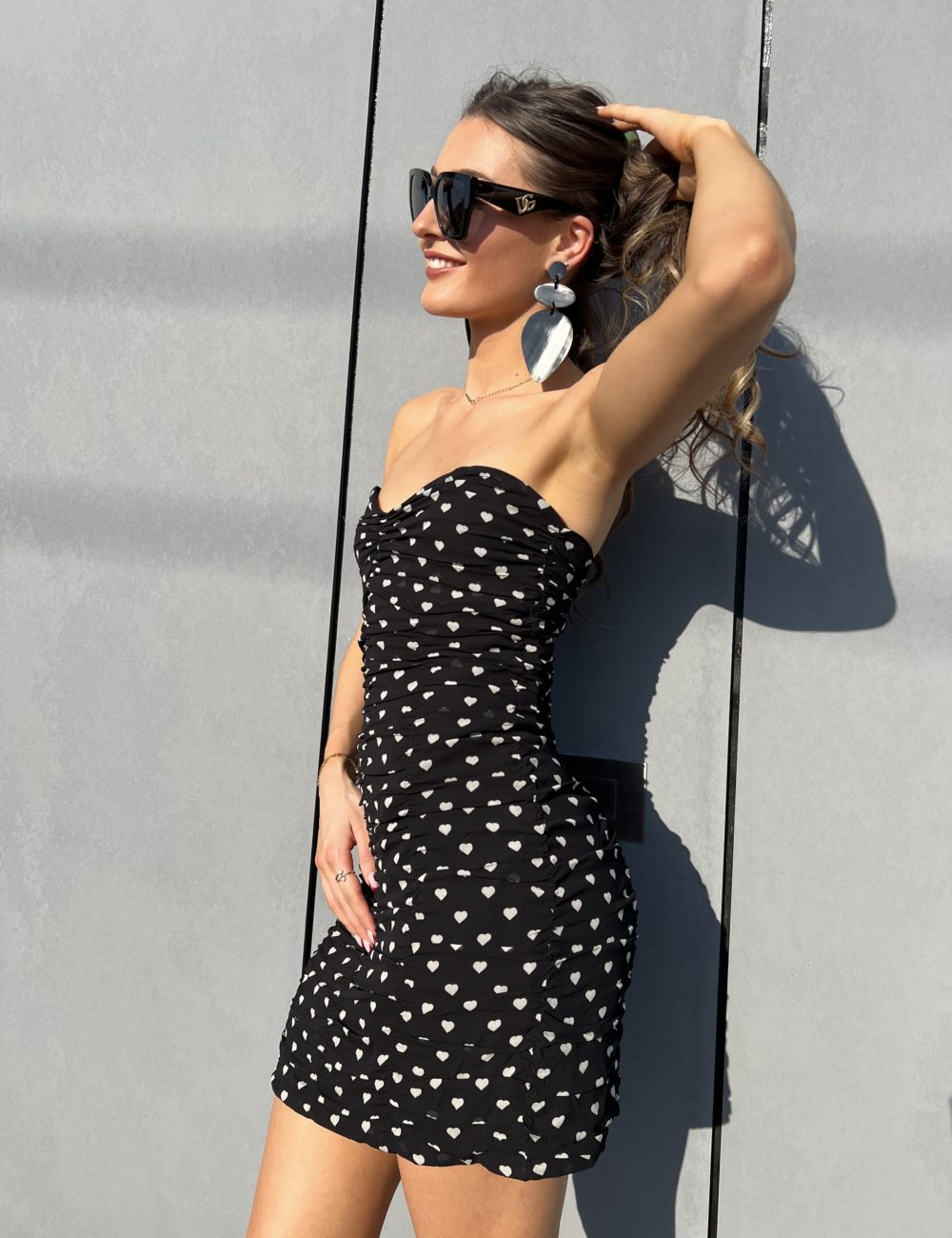 Robe mini bustier noir avec petits coeurs blanc
