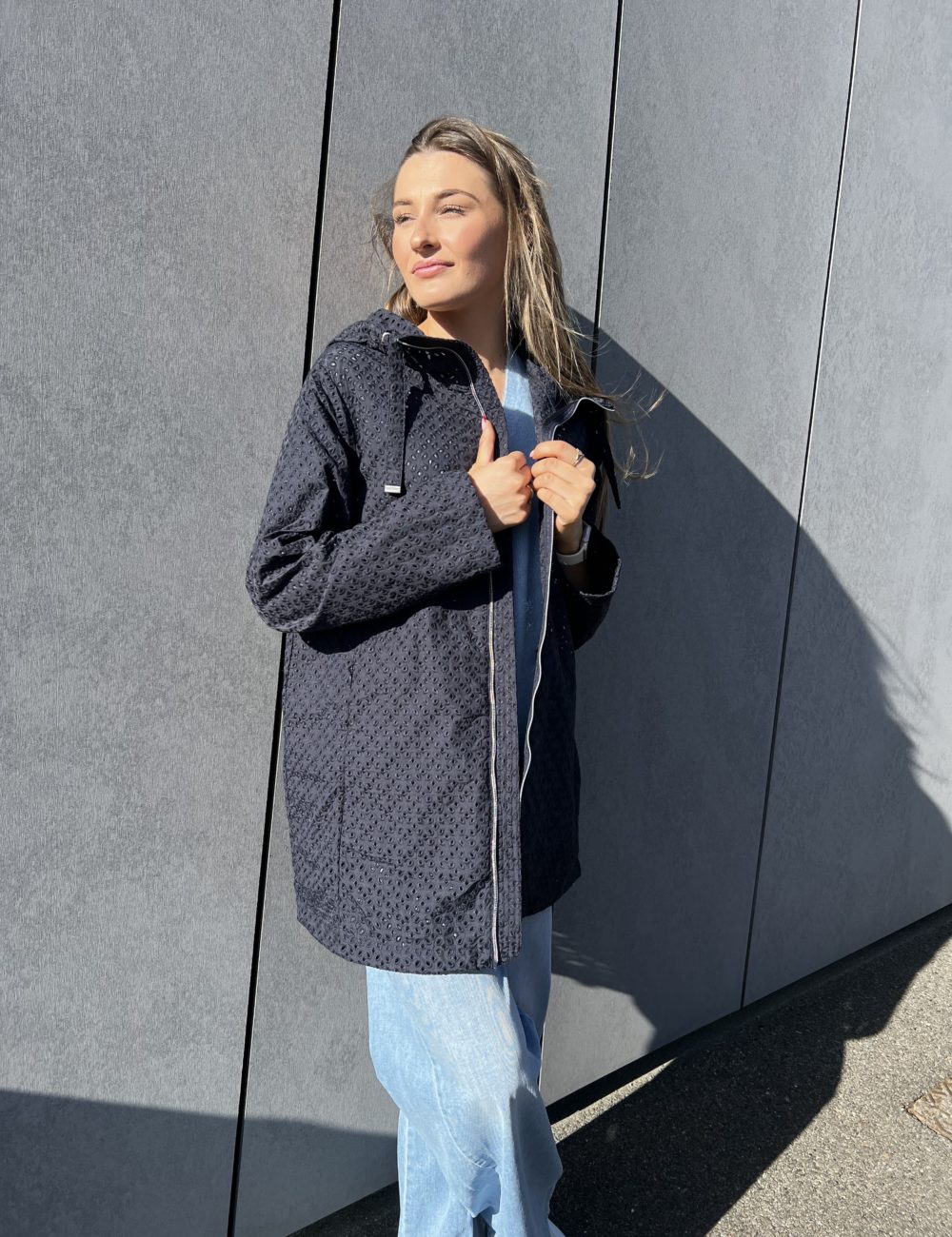 Veste mi-longue bleu foncé Colmar